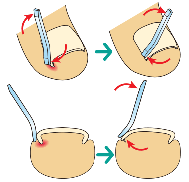 巻いた爪を優しく持ち上げる